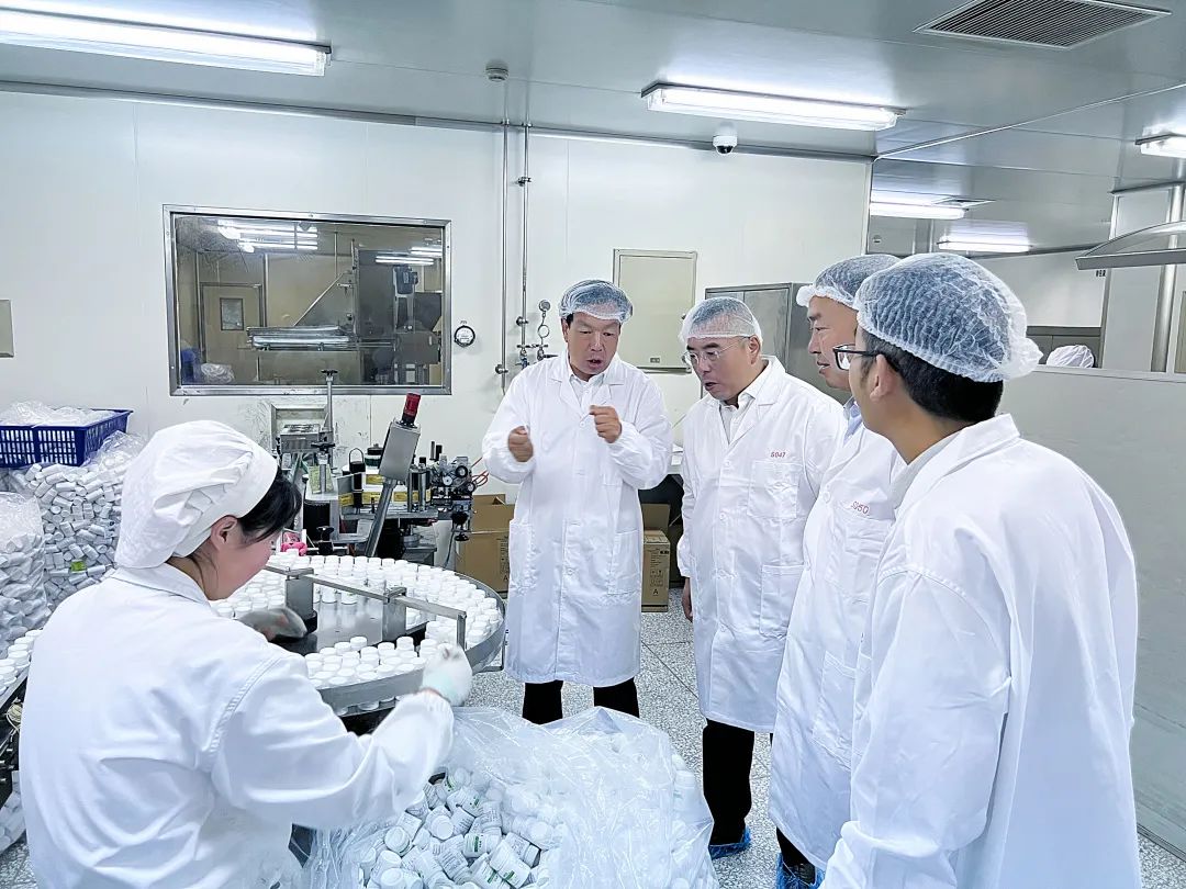 在独一味生产基地,陈得信一行深入车间和一期技改工程项目施工现场,就企业的产品结构、市场前景、自主知识产权创新和生产工艺问题与企业负责人进行了深入交流,并就产业发展布局方向给予充分指导。
