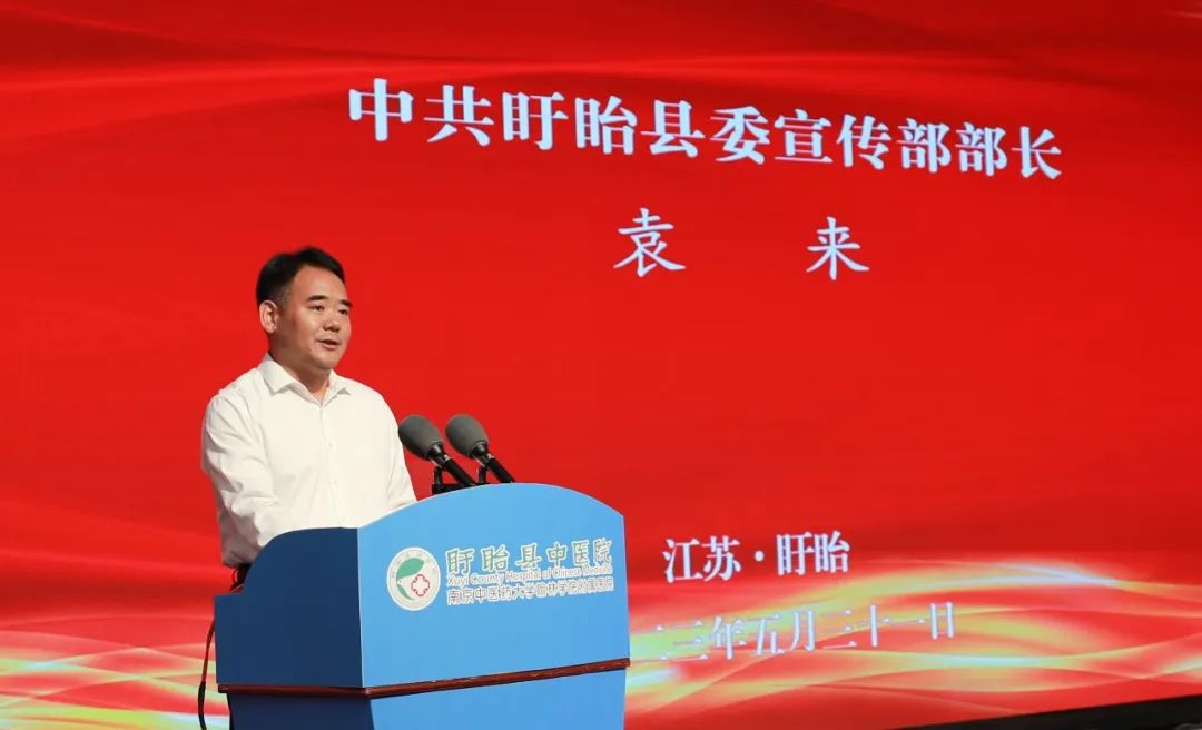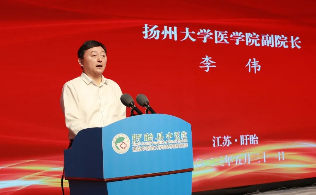 扬州大学医学院副院长李伟,太阳集团tcy8722健康集团首席执行官、太阳集团tcy8722健康科技集团董事长林杨林,盱眙县委宣传部部长袁来,盱眙县卫生健康委党组书记、主任张霞,盱眙县中医院党委书记、院长何占德出席仪式并讲话。